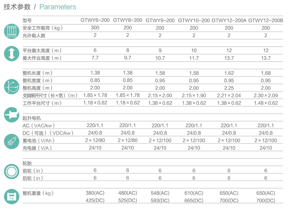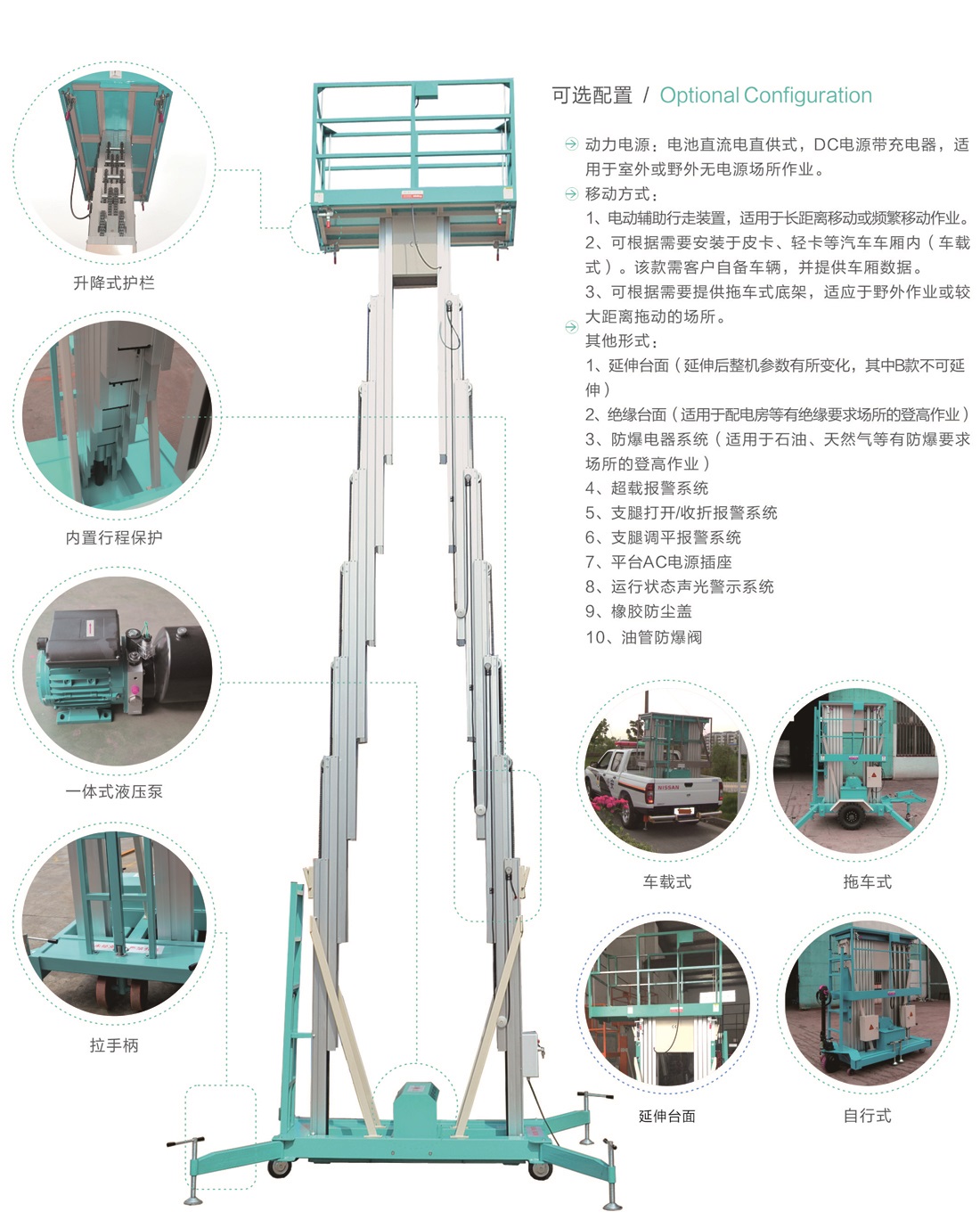 平臺最大高度規(guī)格:可選4m、 6m、8m、9m、10m