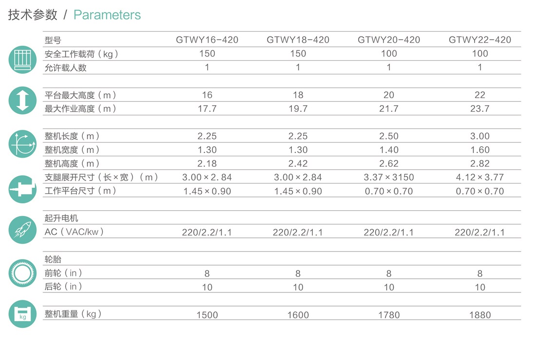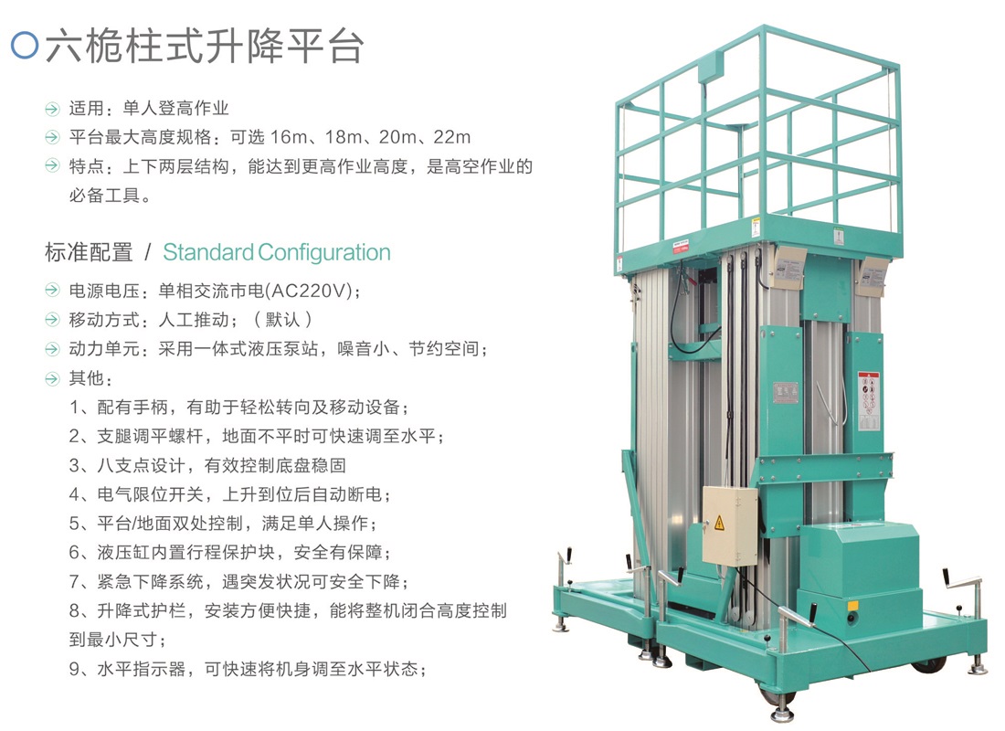 平臺最大高度規(guī)格:可選 16m、18m、20m、22m