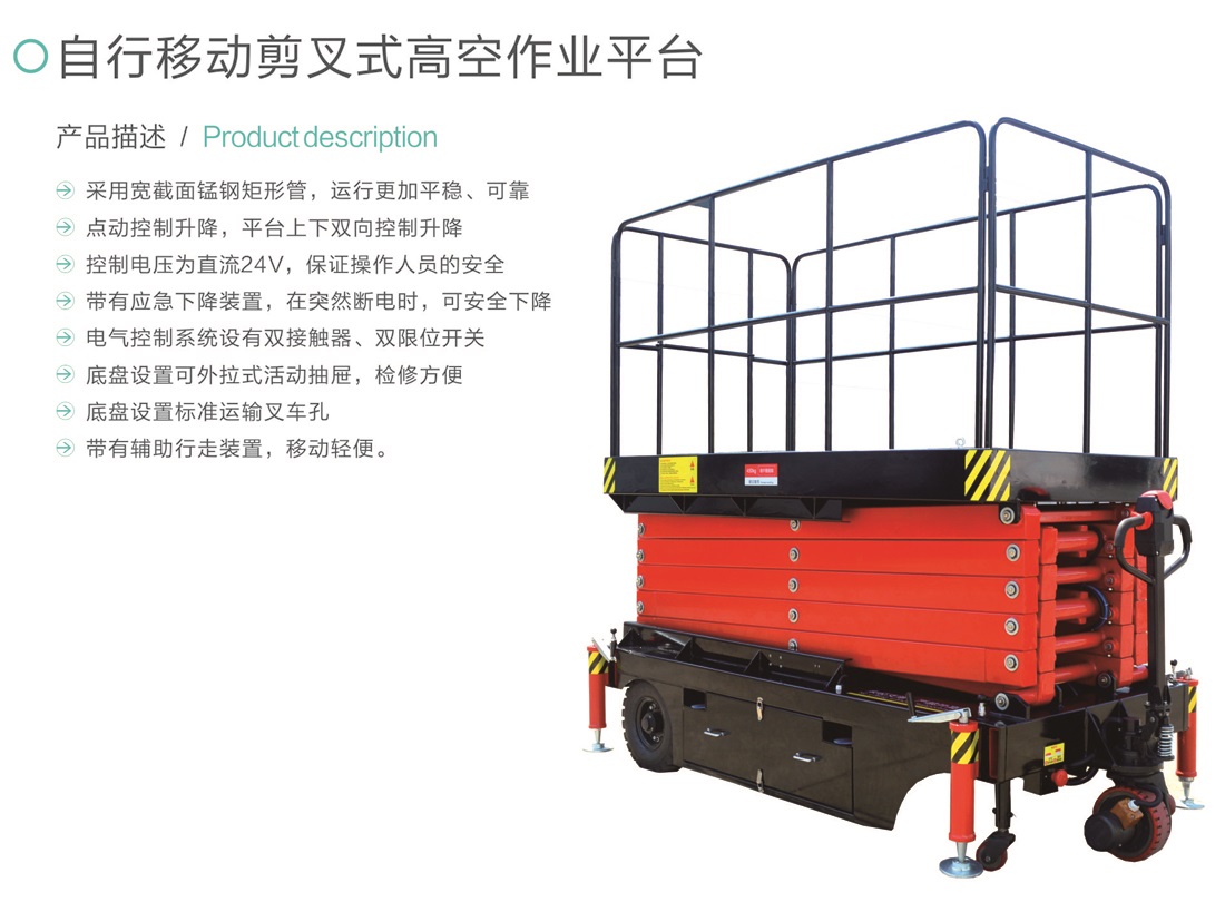 當(dāng)前所在位置: 首頁(yè) > 產(chǎn)品中心 > 移動(dòng)剪叉式高空作業(yè)平臺(tái) > 自行移動(dòng)剪叉式高空作業(yè)平臺(tái)